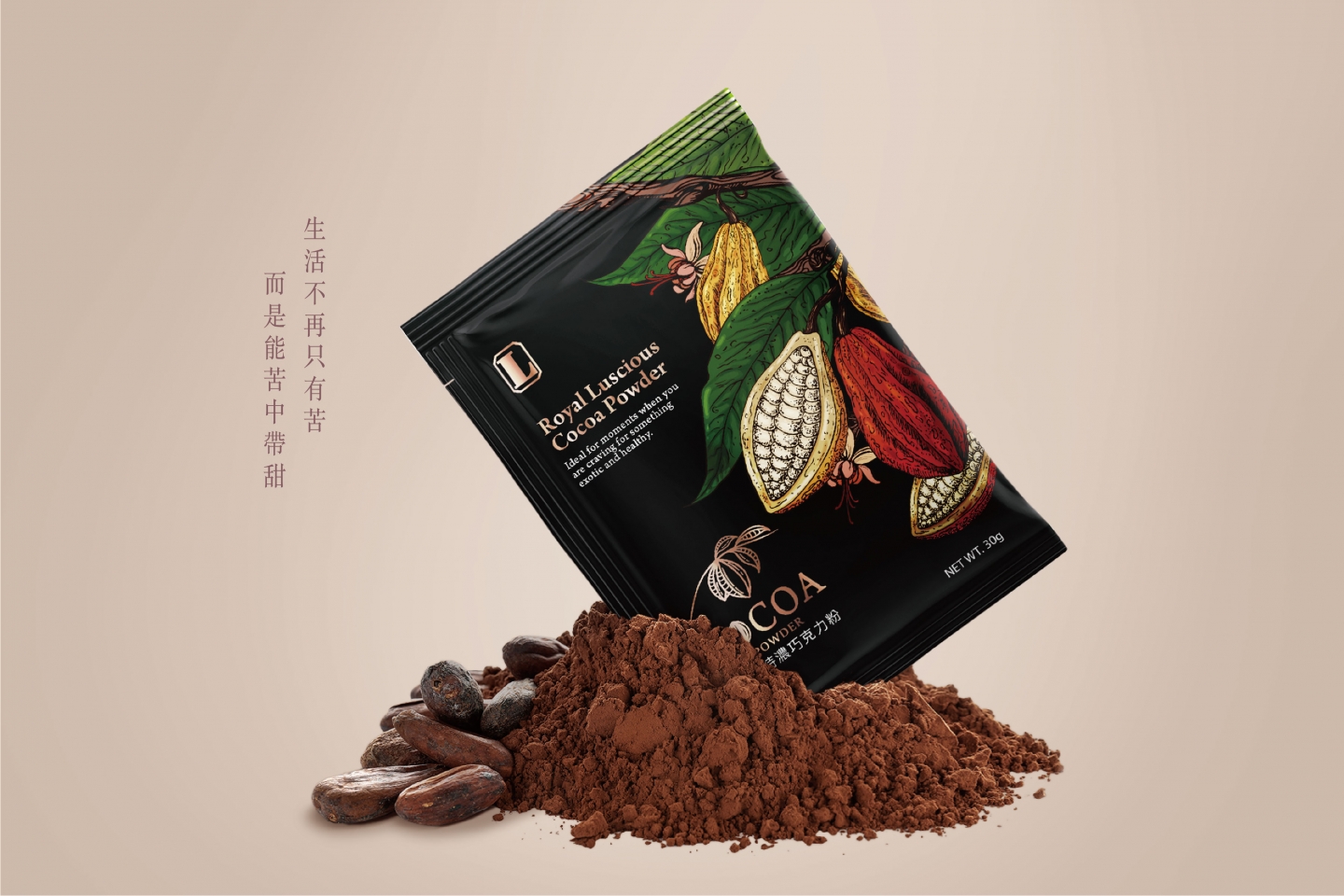 產品包裝策略呈現優雅與頂級印象,設計上以純粹的手繪圖樣,鮮明的色彩暗示著內在豐富的味覺體驗,與大面積黑底搭配,使得視覺畫面富有張力又神秘,搭配局部燙金的方式,自然帶出整體包裝的奢華感。